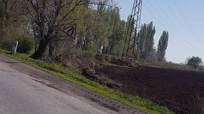 В селе Романовка стоит кривой дорожный знак