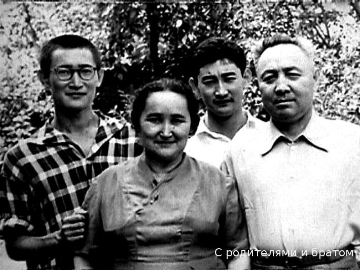 Саякбай Каралаев. Мухтар Ауэзов дружил с отцом и часто бывал у нас дома. Когда были гонения на него, то отец его здесь принимал и устраивал. Аалы Токомбаев любил вспоминать, как отец спас его чуть ли не от расстрела. Дома у нас мы видели самый широкий круг лучших людей того времени. Эта атмосфера сказалась на наших интересах. У нас дома была прекрасная библиотека. Родители покупали очень хорошую литературу, у меня случались периоды книжных запоев и я практически всю классическую литературу перечитал в довольно ранней юности.